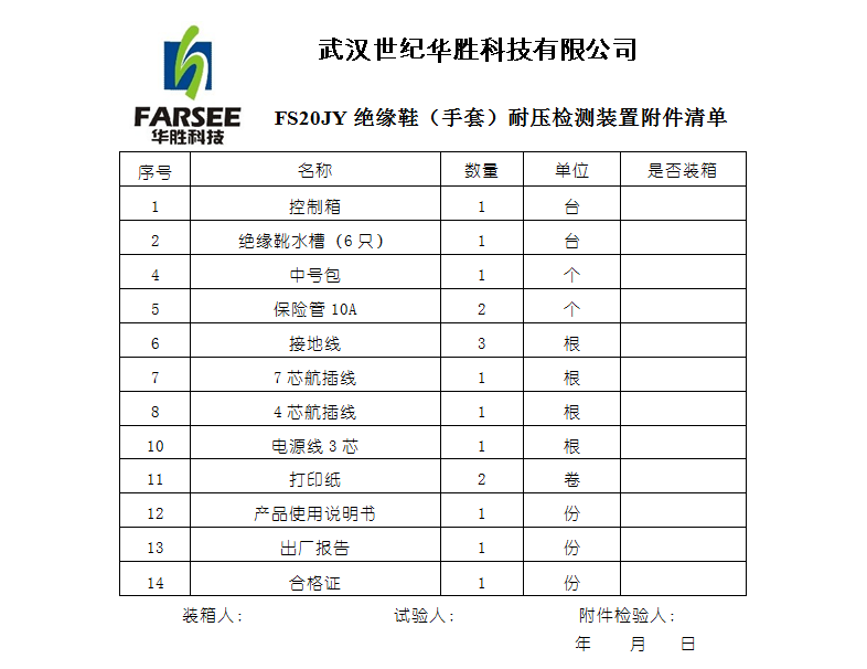 華勝FS20JY絕緣靴(手套)耐壓試驗(yàn)裝置是根據(jù)國(guó)家電網(wǎng)公司發(fā)布的《電力安全工器具預(yù)防性試驗(yàn)規(guī)程》(國(guó)電發(fā)[2002]777號(hào))要求研制的預(yù)防性試驗(yàn)專(zhuān)業(yè)設(shè)備,產(chǎn)品符合DL/T 976-2005《帶電作業(yè)工具、裝置和設(shè)備預(yù)防性試驗(yàn)規(guī)程》和《帶電作業(yè)用絕緣手套用技術(shù)條件》GB 17622-1998。該產(chǎn)品有效地解決了傳統(tǒng)試驗(yàn)方法的諸多隱患,提高了工作效率,保障了工作安全,是絕緣靴(手套)耐壓試驗(yàn)最理想的裝置。