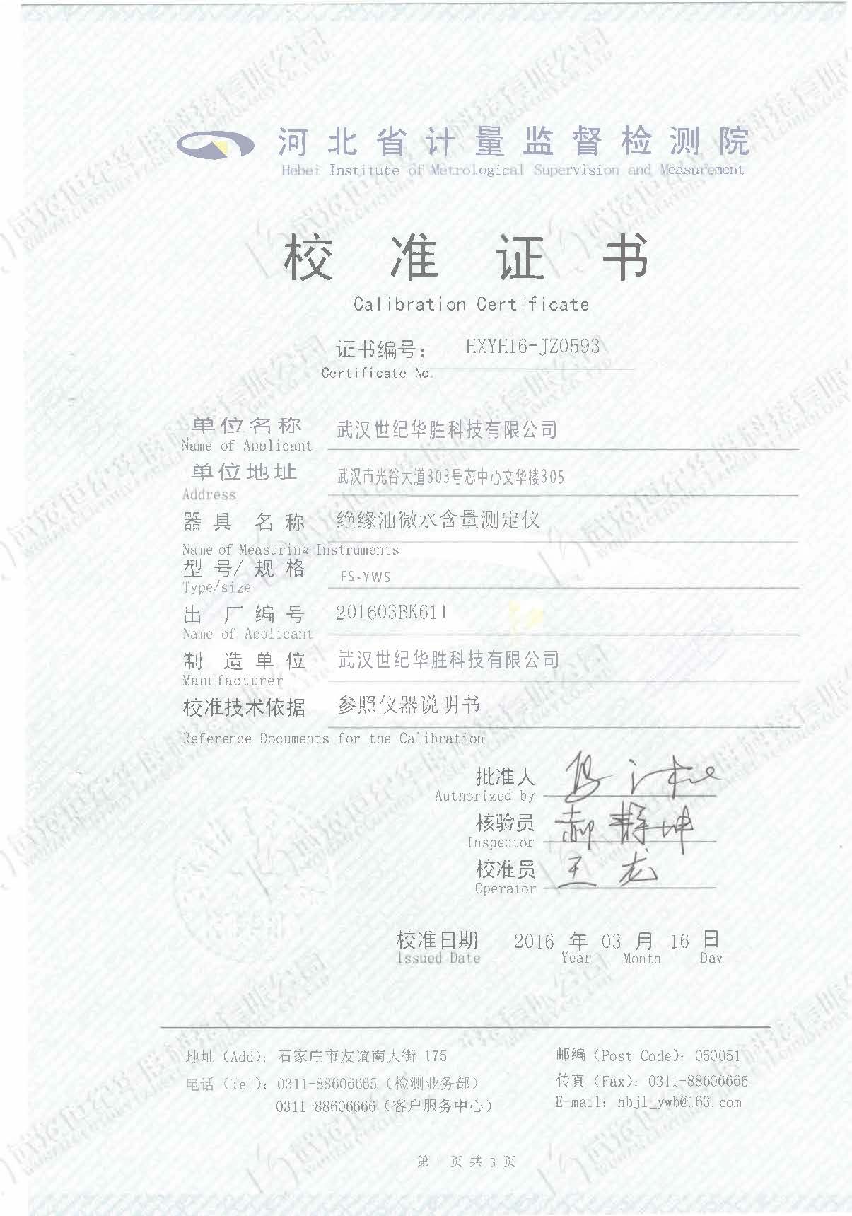 ? ? ? 2.?設(shè)備3年免費檢定或校準(zhǔn)。
